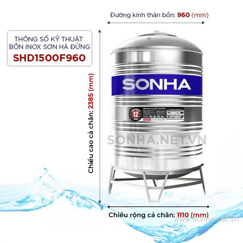 Bồn inox Sơn Hà 1500L (đứng) (F960)