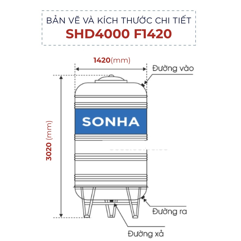 Thông số kỹ thuật Bồn inox Sơn Hà 4000L (đứng) (F1420):